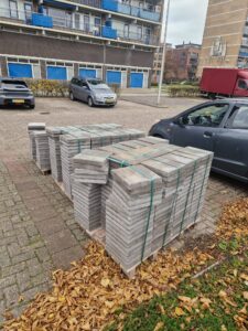 De tegels gaan gelegd worden door Van Atten Tuin-Hout-Bouw